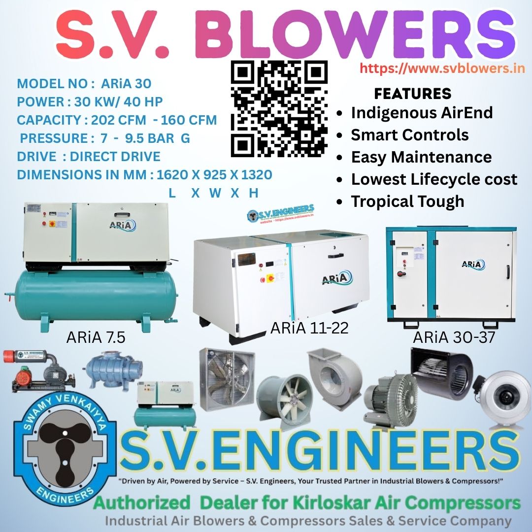 As an Authorized Dealer & Service Partner for Kirloskar Air Compressors, S.V. Engineers provides complete sales, installation, AMC, and spare parts support across South India.